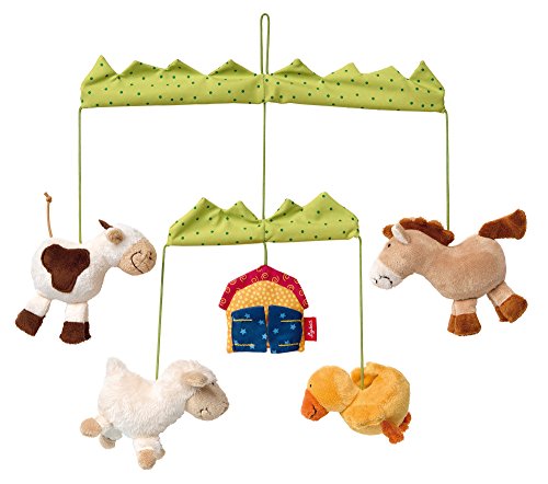 Il ne sera pas difficile de craquer pour ce joli petit mobile bébé en tissu proposé par la marque Sigikid. Sa structure souple laisse suspendre le petit monde de la ferme dans lequel bébé retrouvera ses copains les animaux aux textures toutes douces et chaleureuses.